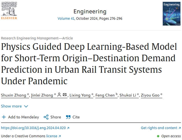 Shuxin Zhang, Jinlei Zhang, Lixing Yang, Feng Chen, Shukai Li, Ziyou Gao. Physics Guided Deep Learning-Based Model for Short-Term Origin-Destination Demand Prediction in Urban Rail Transit Systems Under Pandemic. Engineering, 2024, 41(10): 291-312 DOI:10.1016/j.eng.2024.04.020