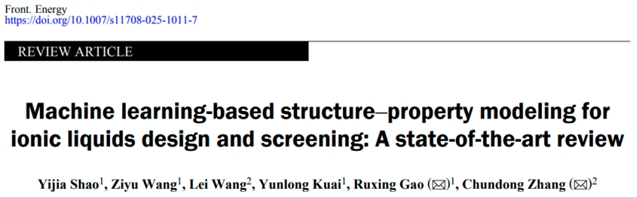 Yijia Shao, Ziyu Wang, Lei Wang, Yunlong Kuai, Ruxing Gao, Chundong Zhang. Machine learning-based structure?property modeling for ionic liquids design and screening: A state-of-the-art review.Front. Energy,https://doi.org/10.1007/s11708-025-1011-7