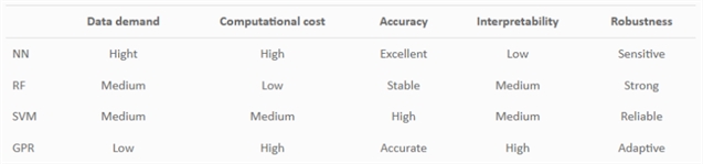 表1 常用机器学习方法的关键特性比较