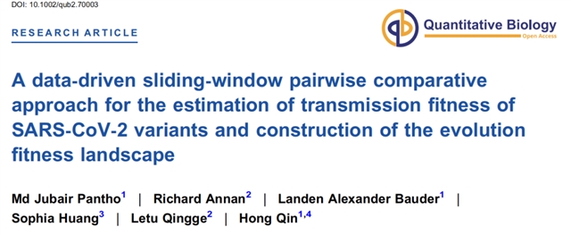 近日,Quantitative Biology期刊发表美国田纳西大学Hong Qin教授团队的重磅研究A data‐driven sliding‐window pairwise comparative approach for the estimation of transmission fitness of SARS‐CoV‐2 variants and construction of the evolution fitness landscape,提出了一种名为“差异种群增长率(DPGR)” 的数据驱动新方法。该方法像一台高精度“比较仪”,通过滑动时间窗口和两两直接比较,成功量化了从Alpha到Omicron等主要关切变异株(VOCs)的相对传播适应性,并首次构建了直观展示其进化竞争的“适应性景观”图。该方法计算简洁、对数据采样偏差不敏感,为实时监测病毒进化、预测优势毒株更替提供了强大新工具。