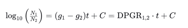 •斜率 (g1−g2)(g1−g2) 即为 DPGR值,它直接量化了变异株1相对于变异株2的每日净增长优势。DPGR > 0 表示变异株1占优,反之则变异株2占优。