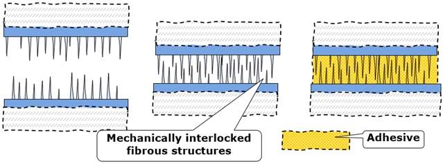图4. 模拟机械联锁与化学粘接相结合的方案。