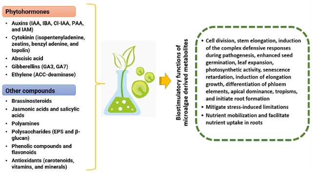 微藻所产生的各种生物刺激剂化合物及其对植物生长的影响