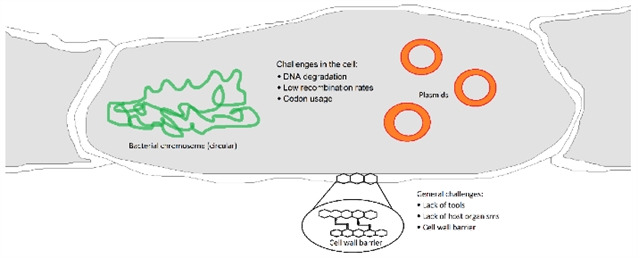 一种放线菌细胞的示意图,该细胞存在可能阻碍基因操作的障碍
