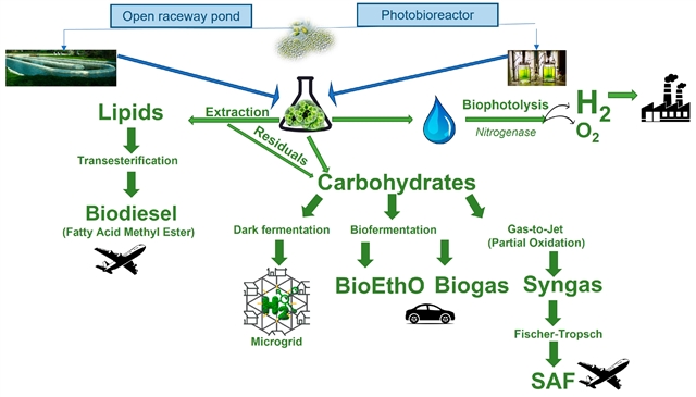 微藻作为可持续航空燃料和生物氢的可持续原料