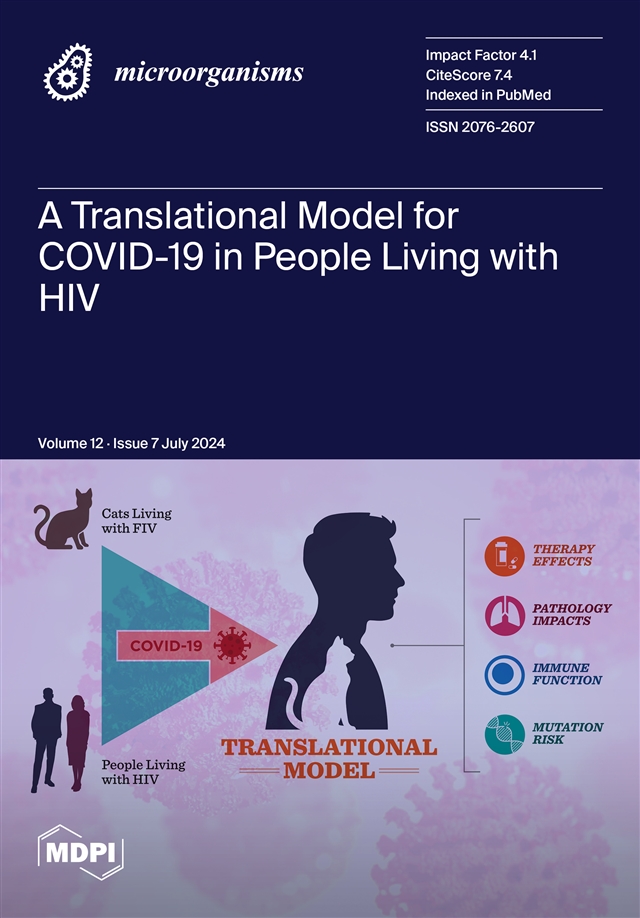 Shatnawi, S.; Gunasekara, S.; Bashor, L.; Tamil Selvan, M.; Nehring, M.; Cowan, S.; Ritchey, J.; VandeWoude, S.; Taylor, B.; Miller, C.; et al. Utilizing Feline Lentiviral Infection to Establish a Translational Model for COVID-19 in People with Human Immunodeficiency Virus Infection.Microorganisms2024, 12, 1289.https://doi.org/10.3390/microorganisms12071289