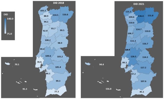 基于药物消耗模型估算的2型糖尿病患病率显示,接受药物治疗的患者患病率从2018年的7.8%上升至2021年的9.1%。若纳入未确诊患者进行校正,2018年与2021年的总体患病率估计分别为13.9%与14.2%,整体呈平稳态势。区域分析表明,尽管全国接受治疗的患者人数增加,但部分地区(如贝雅、埃武拉等)的总体患病率反而出现下降。研究同时通过敏感性分析验证了不同参数设定下患病率估算结果的稳定性。