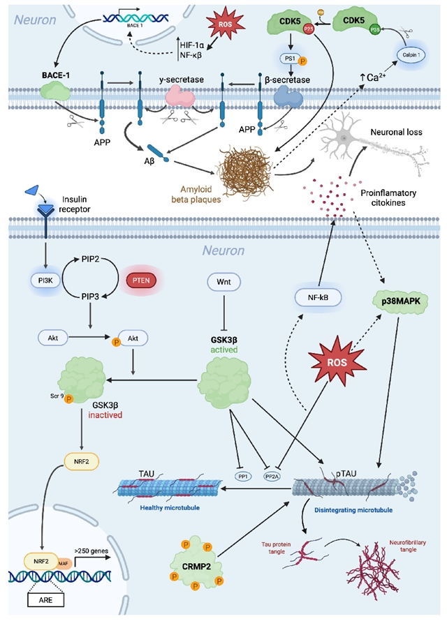 图 2. 阿尔茨海默病所涉及的分子机制示意图