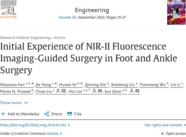 | 浙大团队突破足踝外科诊疗瓶颈!近红外二区荧光导航技术实现手术 “精准透视” Engineering |