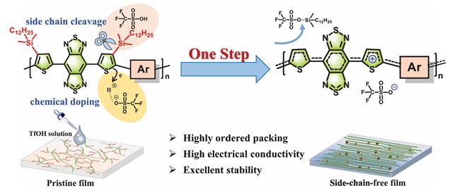 苯并双噻二唑聚合物一步完成侧链裂解与高效掺杂