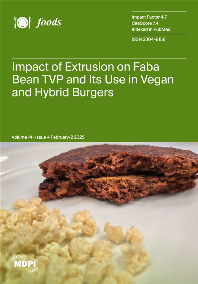 Guerrero, M.; Stone, A.K.; Singh, R.; Lui, Y.C.; Koksel, F.; Nickerson, M.T. Effect of Extrusion Conditions on the Characteristics of Texturized Vegetable Protein from a Faba Bean Protein Mix and Its Application in Vegan and Hybrid Burgers.Foods2025, 14, 547.https://doi.org/10.3390/foods14040547
