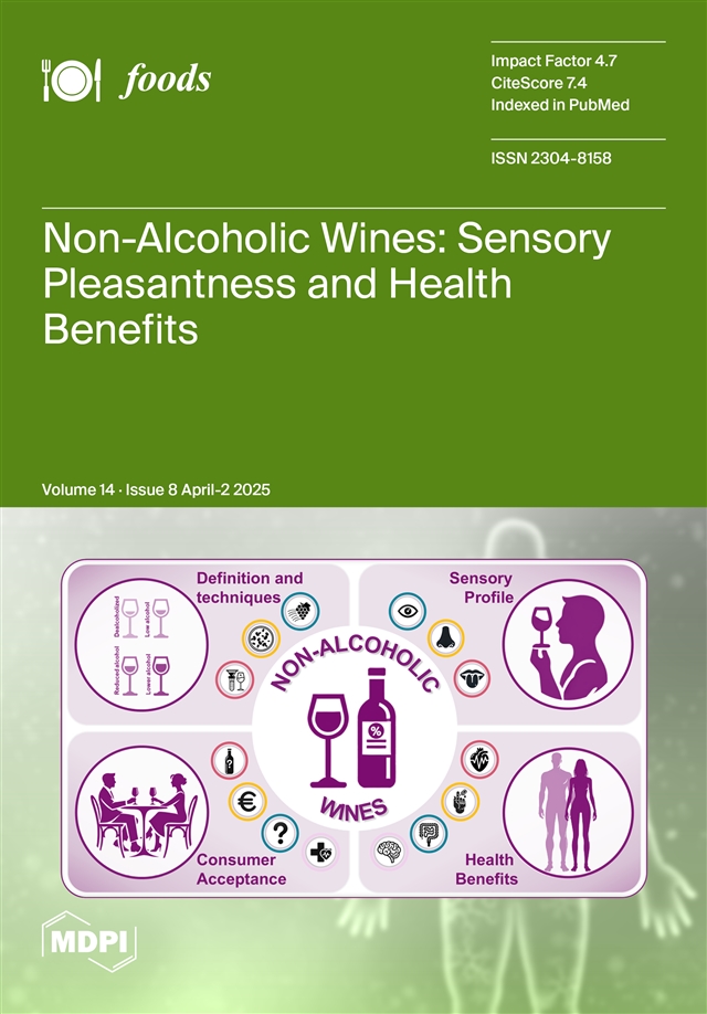 Afonso, S.; Teixeira, A.L.; Escobar, E.; Inês, A.; Vilela, A. Non-Alcoholic Wines: Sensory Pleasantness and Health Benefits.Foods2025, 14, 1356.https://doi.org/10.3390/foods14081356