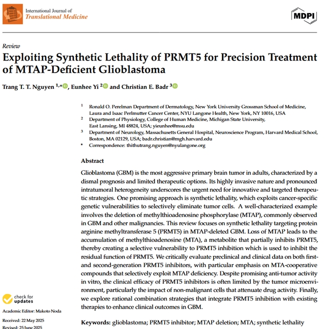 利用 PRMT5 合成致死效应实现 MTAP 缺失型胶质母细胞瘤的精准治疗