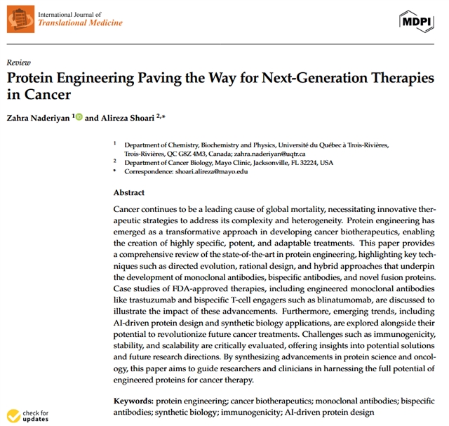 本文综述了蛋白质工程领域的研究进展,介绍了定向进化、合理设计等关键技术及其在单克隆抗体、双特异性抗体等肿瘤生物治疗药物研发中的应用,并探讨了AI 驱动蛋白质设计等新兴趋势、面临的挑战及未来研究方向。