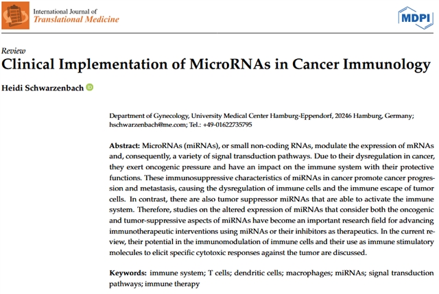 本文概述了十种miRNAs 在不同癌症类型免疫调节中的多种作用途径,以及它们作为激活免疫系统的治疗或靶向分子的潜在作用。
