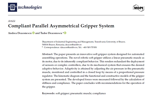 本文介绍了一种专为自动化装配作业设计的新型软体抓取器系统,给出了抓取器系统的运动学图、功能模型和结构模型,测量了产生的力,并计算了刚度和柔顺性。