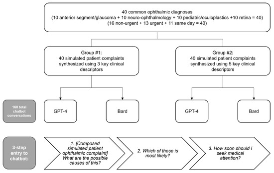 (1) 探究AI聊天机器人在眼科诊断与分诊中的能力。通过向GPT-4和Bard输入80个模拟患者主诉,由三位眼科医生评估其回应质量。