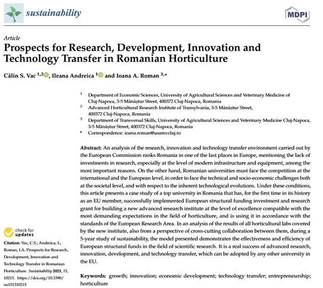 Prospects for Research, Development, Innovation and Technology Transfer in Romanian Horticulture