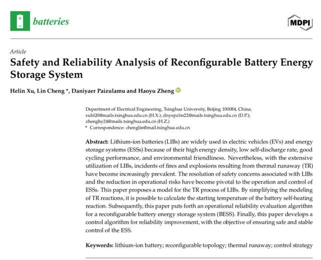 这篇文章提出了一种可重构电池储能系统(BESS)的热失控(TR)过程模型和两种BESS的运行可靠性评估算法及控制算法,确保储能系统的安全和稳定控制。