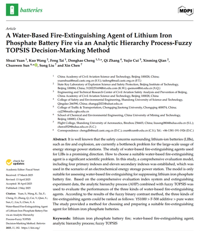 基于层次分析-模糊TOPSIS决策法的磷酸铁锂电池火灾水基灭火剂研究