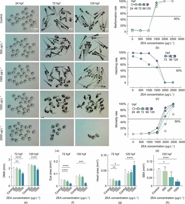 图1 ZEA在斑马鱼中的毒性效应呈现剂量和时间依赖性。