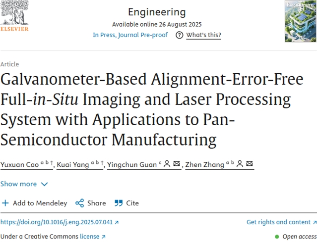 Yuxuan Cao, Kuai Yang, Yingchun Guan, Zhen Zhang, Galvanometer-Based Alignment-Error-Free Full-in-Situ Imaging and Laser Processing System with Applications to Pan-Semiconductor Manufacturing, Engineering, DOI: 10.1016/j.eng.2025.07.041