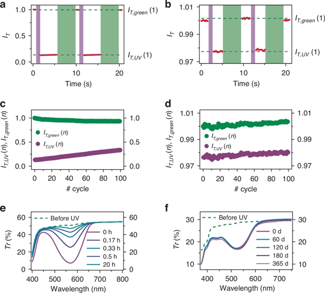 2、实现光控动态信号调控:通过UV/绿光序列控制材料的光异构化,实现对透射光强度的时空精准调控(动态范围>1个数量级)。