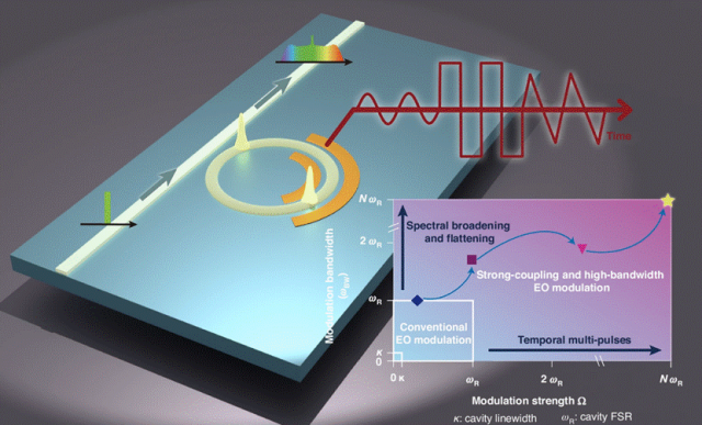 文该成果以“Strong-coupling and high-bandwidth cavity electro-optic modulation for advanced pulse-comb synthesis”为题发表在Light: Science & Applications。文章第一作者为北京大学雷天琦和哈佛大学宋云翔,通讯作者为北京大学胡耀文和哈佛大学Marko Loncar。