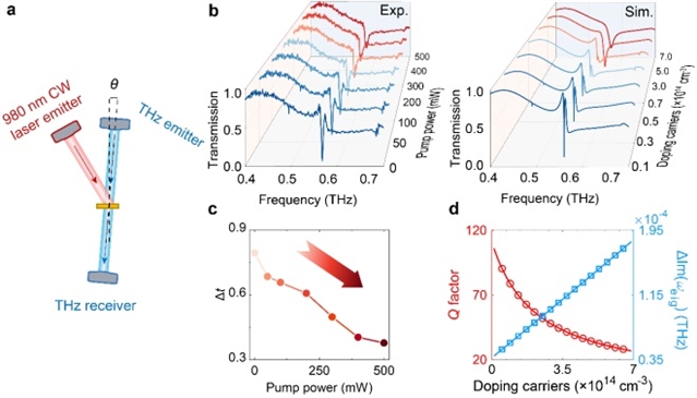 全介质太赫兹超表面主体是一个高阻硅(损耗极低)薄板,上面周期性地排列着空气孔。结构简单,易于加工,且能在太赫兹波段支持高Q值的准BIC模式,通过精确改变入射角,驱动系统从BIC状态演化至EP状态。实验测量结果与理论预测高度吻合(图1,图2)。