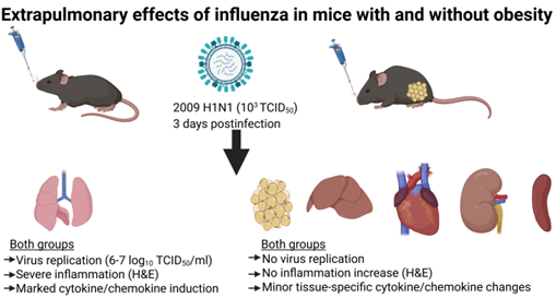 论文标题:Acute Phase Extrapulmonary Effects of a High-Dose Influenza A Virus Infection in a Mouse Model of Obesity