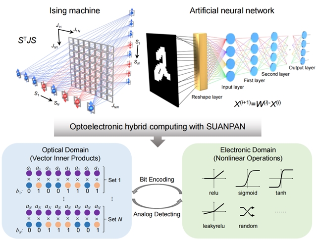 近期,清华大学电子系黄翊东教授团队冯雪和李永卓老师的研究小组在线性光计算领域取得重大突破。他们提出了一种名为“光子算盘”的新型架构,成功解决了长期限制线性光计算维度扩展的两大瓶颈:复杂的光束相互作用和对高速数模/模数转换器阵列的依赖。该架构以“光源-探测器对”作为独立的基本计算单元,采用独创的时空编码量化方案进行数模混合计算,实验上实现了手写数字图像的识别以及1024维伊辛问题的求解。
