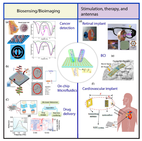 图1. 从可见光到太赫兹-近红外范围的超表面辅助生物电子平台示意图