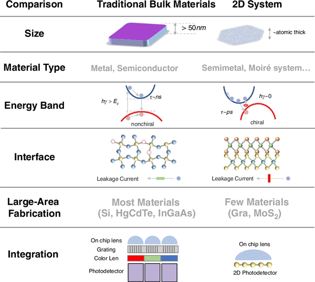 图4. 新型多维度探测器与二维材料之间的关联