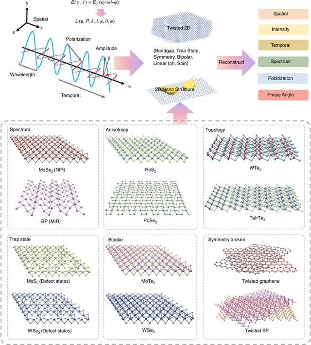 鉴于此,研究小组聚焦二维材料独特的光-物质相互作用特性,系统梳理并评述了基于二维材料的新型多维光探测器的发展现状与未来趋势,从物理机制、器件结构到集成策略,全面揭示二维材料在多维信息探测中的潜力。