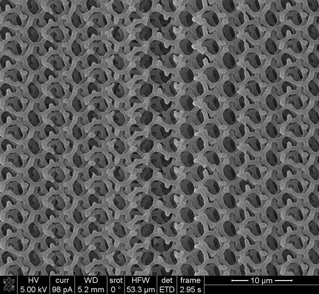 A:我研究的灵感源自蝴蝶翅膀上的连续螺旋结构,这是一种具有三周期、体心立方对称的最小等值曲面结构,表面上没有一条直线,完全由平滑的曲率构成。单连续螺旋结构就能衍生出多种复杂结构。最令人惊叹的是,如此奇妙的几何构型竟能在生物体内通过自下而上的方式自然合成,这一点本身就令人着迷。