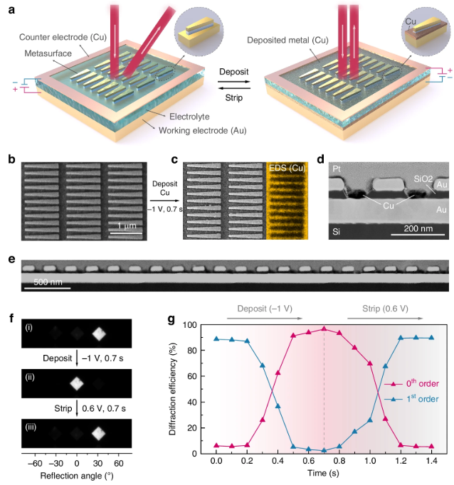 图2: 基于可逆铜电沉积的有源光束控制超表面