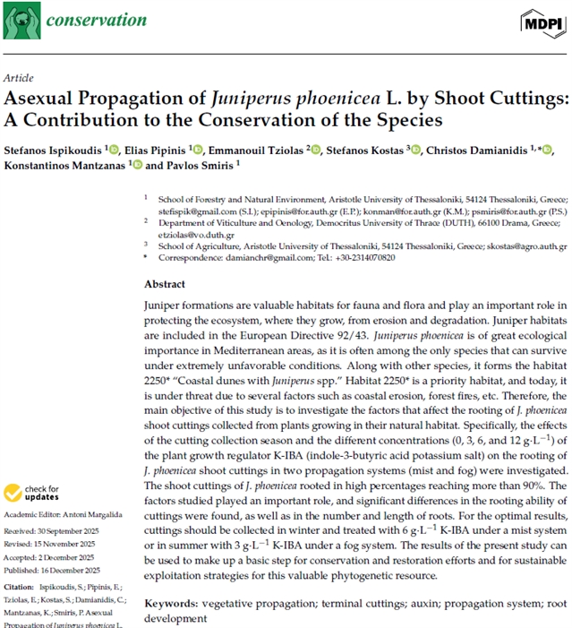 腓尼基刺柏(Juniperus phoenicea L.)嫩枝扦插无性繁殖技术研究:一项物种保护实践