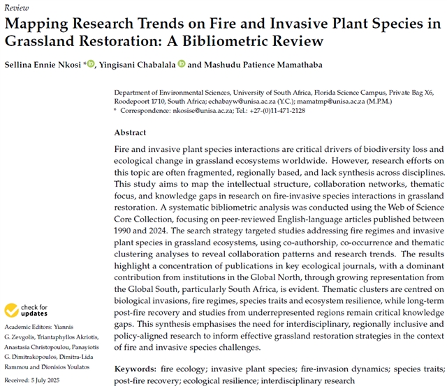 未来的研究应采用跨学科、系统性方法,加强长期监测与代表性不足区域的研究,构建公平合作与知识共同生产体系,以科学、公正且全球化的视角应对火灾与入侵物种对草地恢复的影响。