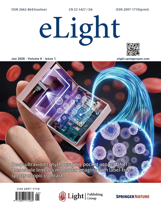 自显微镜问世以来,生物成像技术始终依赖染料或荧光标记来观察细胞结构,这不仅改变了样本的原始状态,还需要耗时的制备流程。在癌症筛查、术中快速病理等场景中,传统染色可能延误关键诊疗决策。近日,美国康涅狄格大学郑国安教授团队研发出深紫外叠层成像口袋显微镜(DART)。这一手持式设备巧妙利用生物分子在深紫外波段的固有吸收特性,通过无透镜编码叠层成像技术,实现了308纳米分辨率、厘米级视场和毫米级景深的高性能成像。DART的核心创新在于:通过差分光谱成像定量测定核酸和蛋白质分布,灵敏度达飞克级;采用‘虚拟态’算法消除相干性不足等光学缺陷;基于物理原理的分子定量实现可解释的虚拟染色,避免了AI‘黑箱’问题。该技术有望在快速病理诊断、活细胞原位监测、太空生物学研究等领域发挥重要作用。研究成果以“Deep-ultraviolet ptychographic pocket-scope (DART): mesoscale lensless molecular imaging with label-free spectroscopic contrast” 为题发表于eLight(影响因子32.1,入选两期卓越计划)。