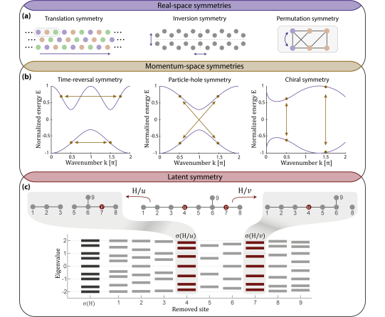研究团队首先明确了“隐藏对称性”的核心定义,图1揭示其与传统对称性的本质区别。图 1中,实空间对称性有直接视觉特征,动量空间对称性体现在能带结构上,而隐藏对称性无需实空间或动量空间的显性特征,只需满足“移除两个节点后网络特征值谱一致”这一条件。基于此,团队设计了九节点隐藏对称光子网络,以飞秒激光写入的波导阵列为载体,构建均匀耦合系统,确定核心传输节点。该设计打破传统量子网络依赖可见空间对称性的限制,解决了传统网络设计空间窄、难适配集成芯片的问题。