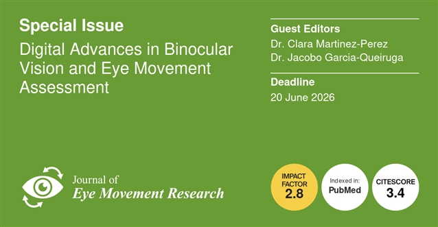 期刊涵盖眼动功能的各个研究维度,包括但不限于:眼动记录方法、神经生理与认知模型、注意力机制研究、阅读行为分析、神经学临床应用、人体工程学研究、媒体传播效果评估等。目前,期刊已被Scopus, SCIE (Web of Science), PubMed, PMC等重要数据库收录。
