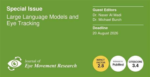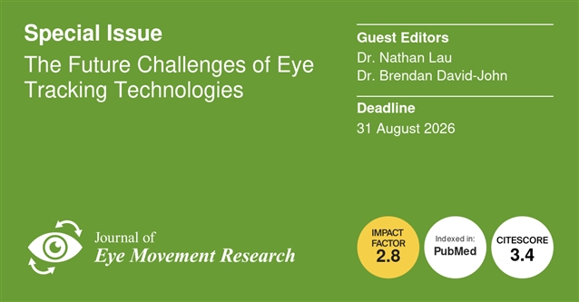 本期特刊旨在汇集实证研究、方法论发展和应用研究,以展示眼动测量如何有助于理解和提升人类行为表现。稿件可以探讨可用性、培训、安全性、临床评估或设计评价等问题,其中眼动追踪可作为主要输入或辅助研究工具。