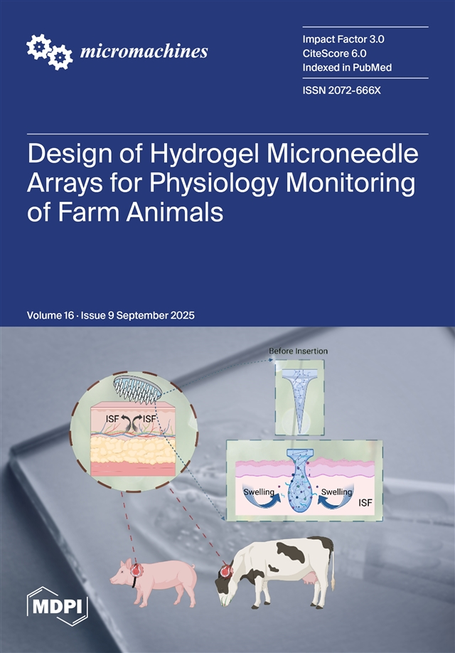 cite: Gautier, L.; Wiart-Letort, S.; Massé, A.; Xavier, C.; Novais-Gameiro, L.; Hoang, A.; Escudé, M.; Sorrentino, I.; Bonnet, M.; Gondret, F.; et al. Design of Hydrogel Microneedle Arrays for Physiology Monitoring of Farm Animals.Micromachines2025, 16, 1015.https://doi.org/10.3390/mi16091015