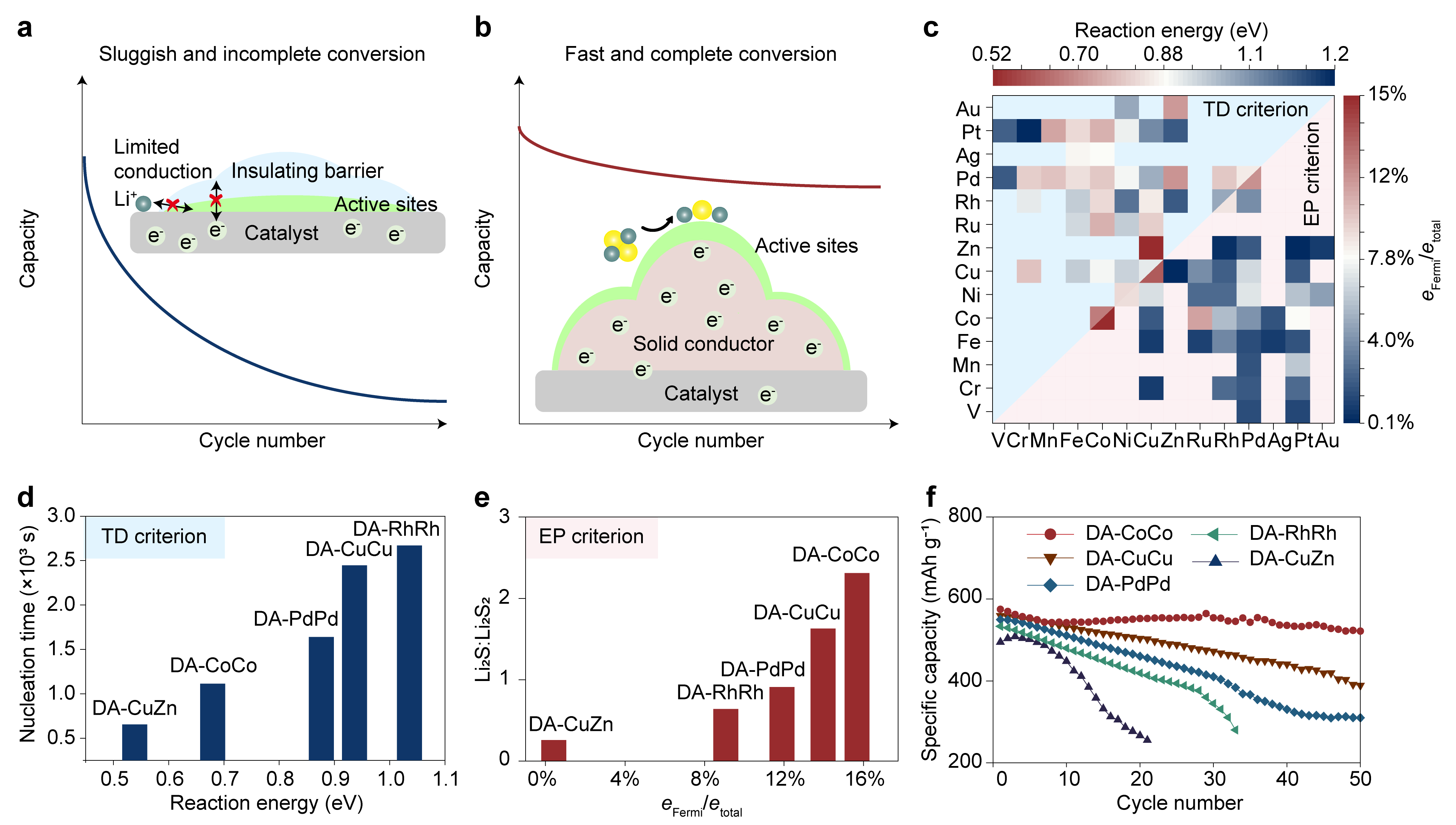 图1:催化材料的热力学性质和产物电子性质对锂硫电池固相转化反应的作用。