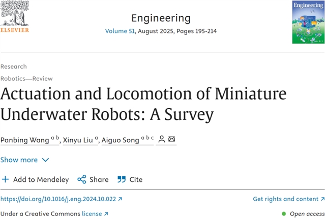 Panbing Wang, Xinyu Liu, Aiguo Song. Actuation and Locomotion of Miniature Underwater Robots: A Survey. Engineering, 2025, 51(8): 195-214 DOI:10.1016/j.eng.2024.10.022