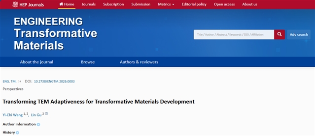 2.Yi-Chi Wang, Lin Gu.Transforming TEM Adaptiveness for Transformative Materials Development,ENG. Transform. Mater., DOI:10.2738/ENGTM.2026.0003