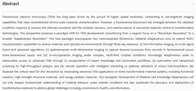 Yi-Chi Wang, Lin Gu. Transforming TEM Adaptiveness for Transformative Materials Development.ENGINEERING Transformative Materials,2026, 10.2738/ENGTM.2026.0003.