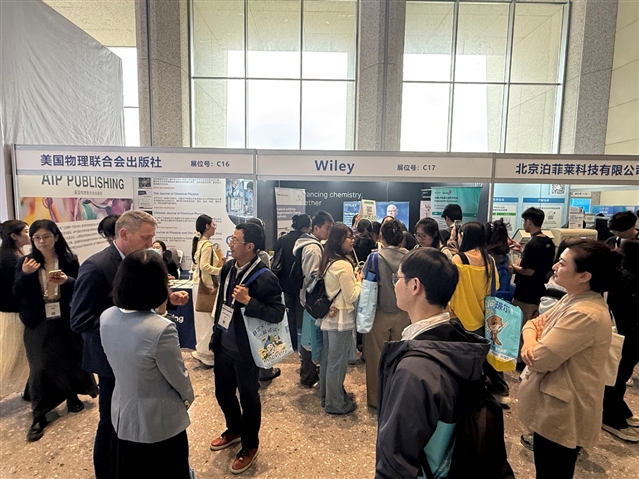 Wiley 展位持续开放,为参会者提供期刊咨询、出版服务与学术资源支持,现场准备的期刊周边吸引大量师生驻足互动,成为会场内学术交流的重要枢纽。