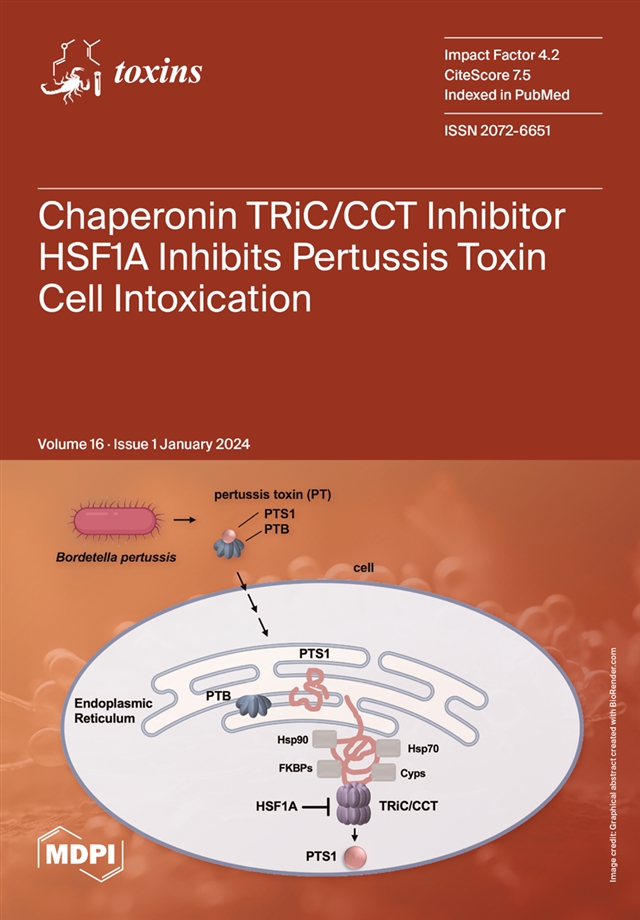 Jia, J.; Zoeschg, M.; Barth, H.; Pulliainen, A.T.; Ernst, K. The Chaperonin TRiC/CCT Inhibitor HSF1A Protects Cells from Intoxication with Pertussis Toxin.Toxins2024, 16, 36.https://doi.org/10.3390/toxins16010036