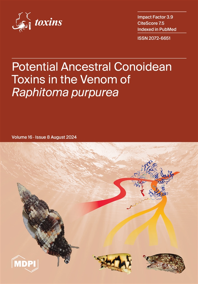 Chiappa, G.; Fassio, G.; Modica, M.V.; Oliverio, M. Potential Ancestral Conoidean Toxins in the Venom Cocktail of the Carnivorous SnailRaphitoma purpurea(Montagu, 1803) (Neogastropoda: Raphitomidae).Toxins2024, 16, 348.https://doi.org/10.3390/toxins16080348